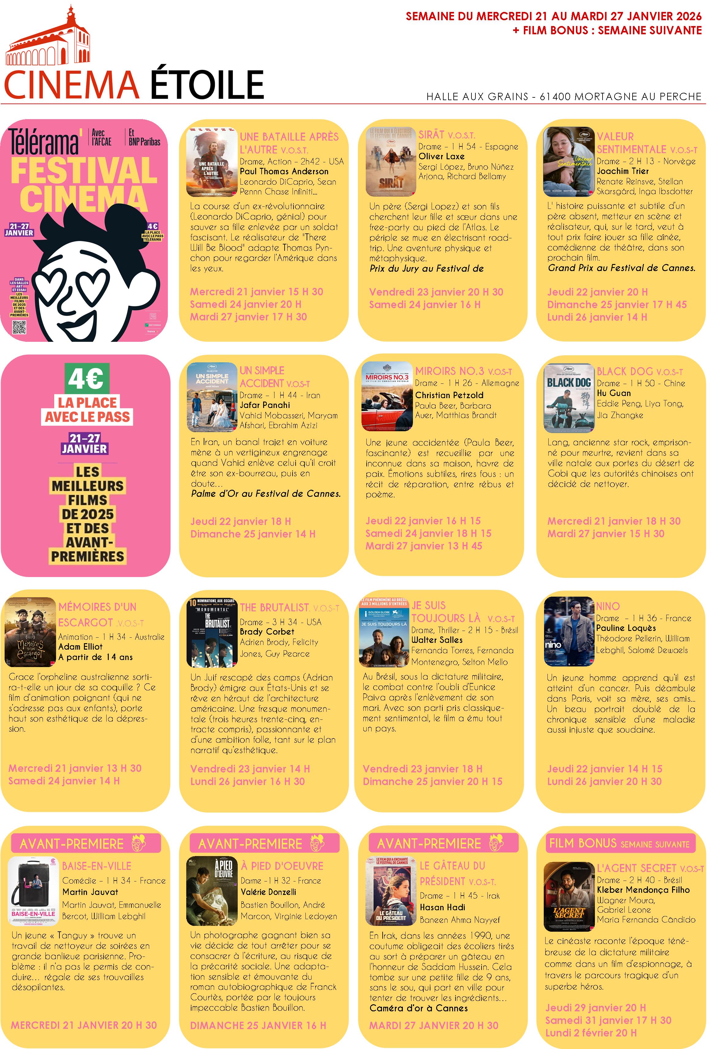 Aucun film ne correspond à votre sélection. Nouvelles séances disponibles chaque mardi.